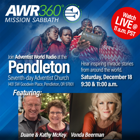 Join Adventist World Radio's Duane and Kathy McKey for a special AWR360° Mission Hour this Sabbath, December 18, as they share the very latest inspiring miracle stories from around the world! In addition, soprano Vonda Beerman will provide beautiful and uplifting music.